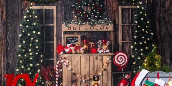 Step into a magical holiday market with our 'Hot Cocoa Cottage' backdrop—packed with candy canes, cocoa mugs, nutcrackers, and all the North Pole charm your little ones will love. This set is bright, festive, and full of adorable props that spark genuine smiles and candid moments. From the snowy floor to the glowing Christmas trees, every detail creates a warm, whimsical holiday story. Perfect for kids, families, and anyone wanting a fun, spirited Christmas session.